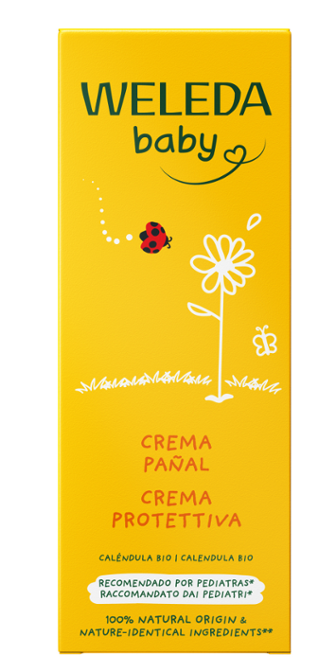La caléndula orgánica la llevamos cultivando hace más de 80 años en nuestro campo propio en Alemania. Esta planta tiene una propiedad excepcional que utilizamos en los cuidados de nuestra Línea Bebé. Para nuestra crema para coceduras tomamos extractos de caléndula y manzanilla, y los mezclamos con aceite de almendra dulce y de sésamo, creando una crema rica para reducir el enrojecimiento y cuidar suavemente el área del pañal. El óxido de zinc protege la piel y proporciona una barrera contra la humedad y no obstruye los poros. Además, también es perfecto para cualquier irritación en pieles de adultos.